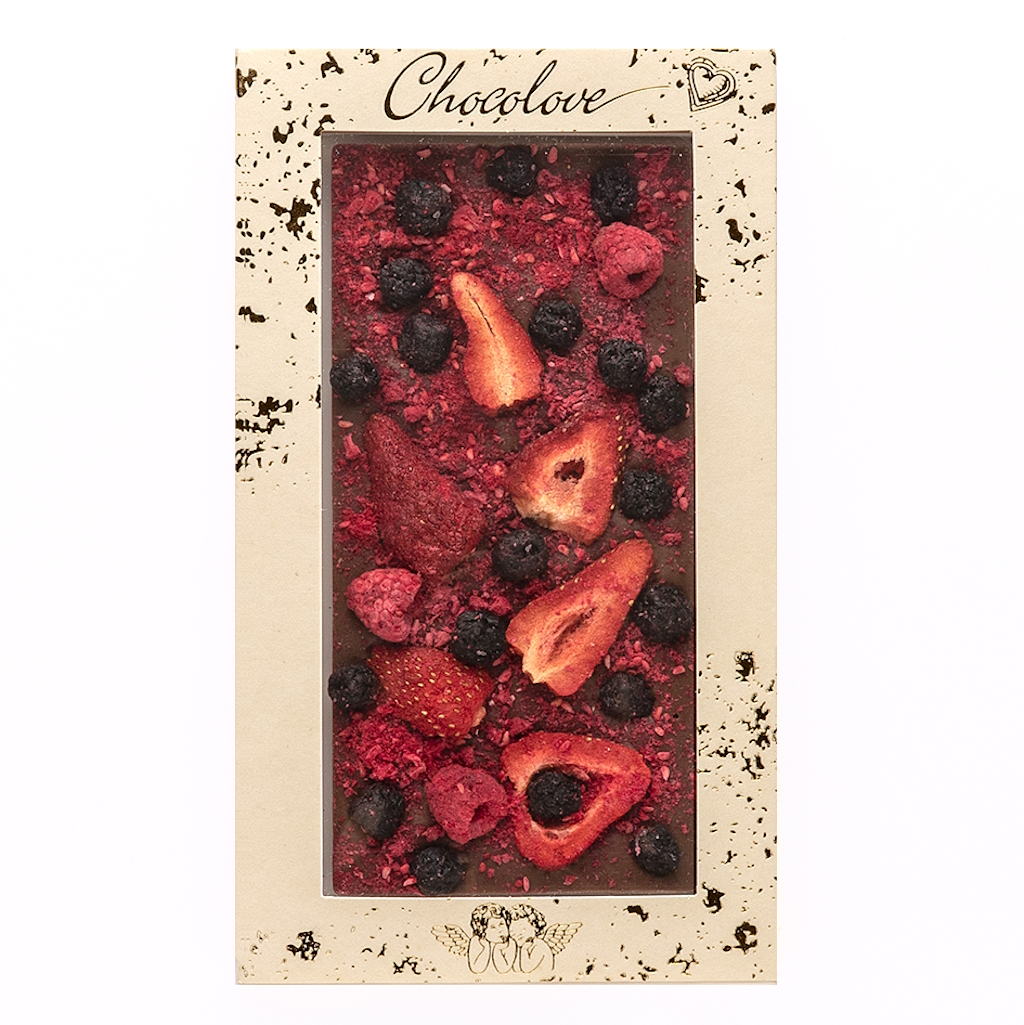 Главная -> Каталог -> Молочный шоколад -> Молочный шоколад ручной работы с клубникой, малиной и черноплодной рябиной