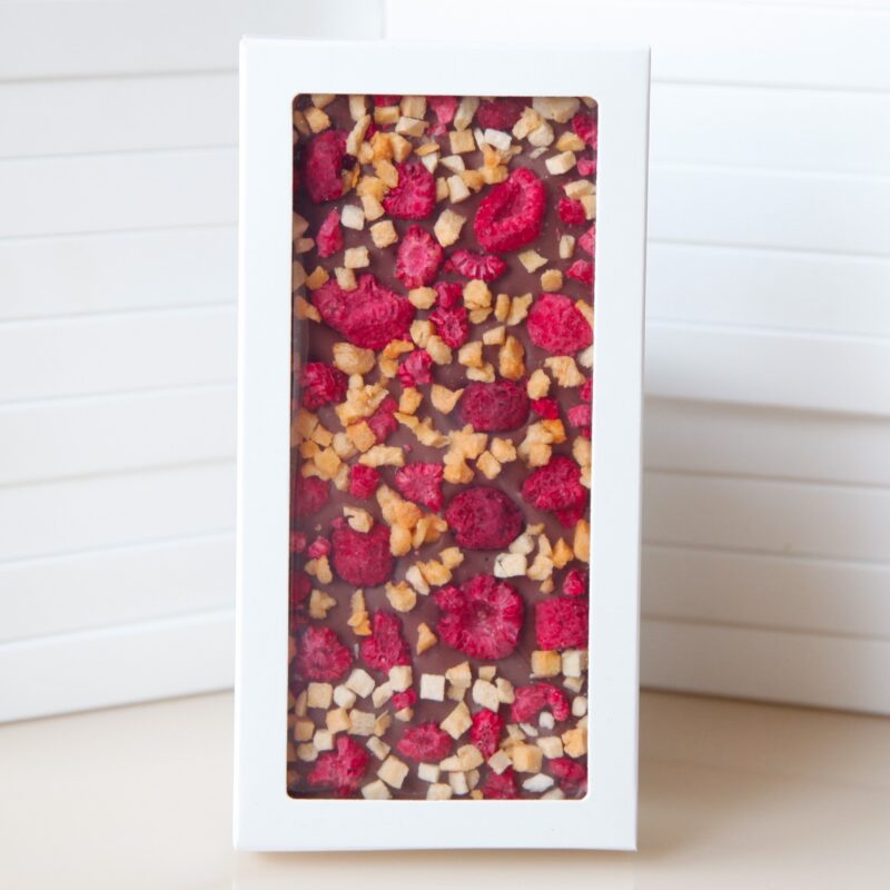 Главная -> Каталог -> Молочный шоколад -> Молочный шоколад ручной работы с персиком, абрикосом и малиной